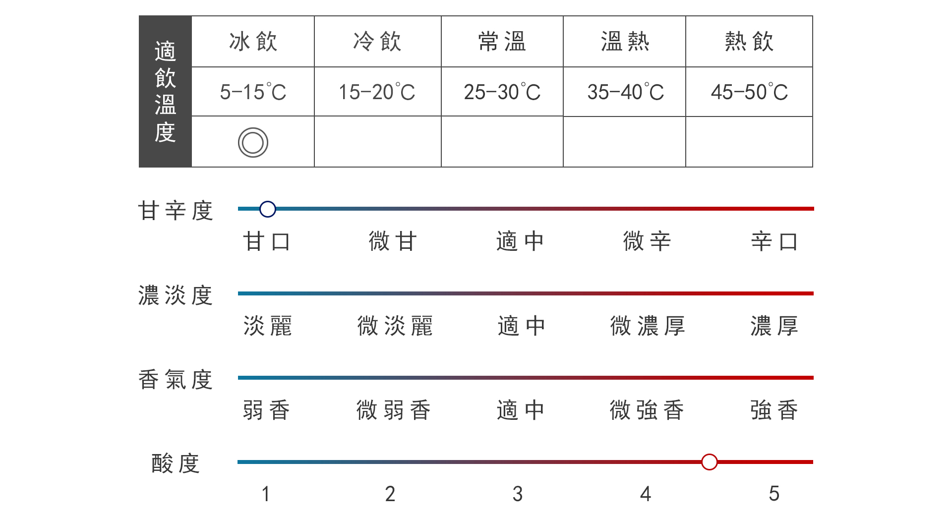酒的顏色呈現出香檳金的濃黃色。香氣有發酵水果的香氣,還有成熟的味淋的元素。