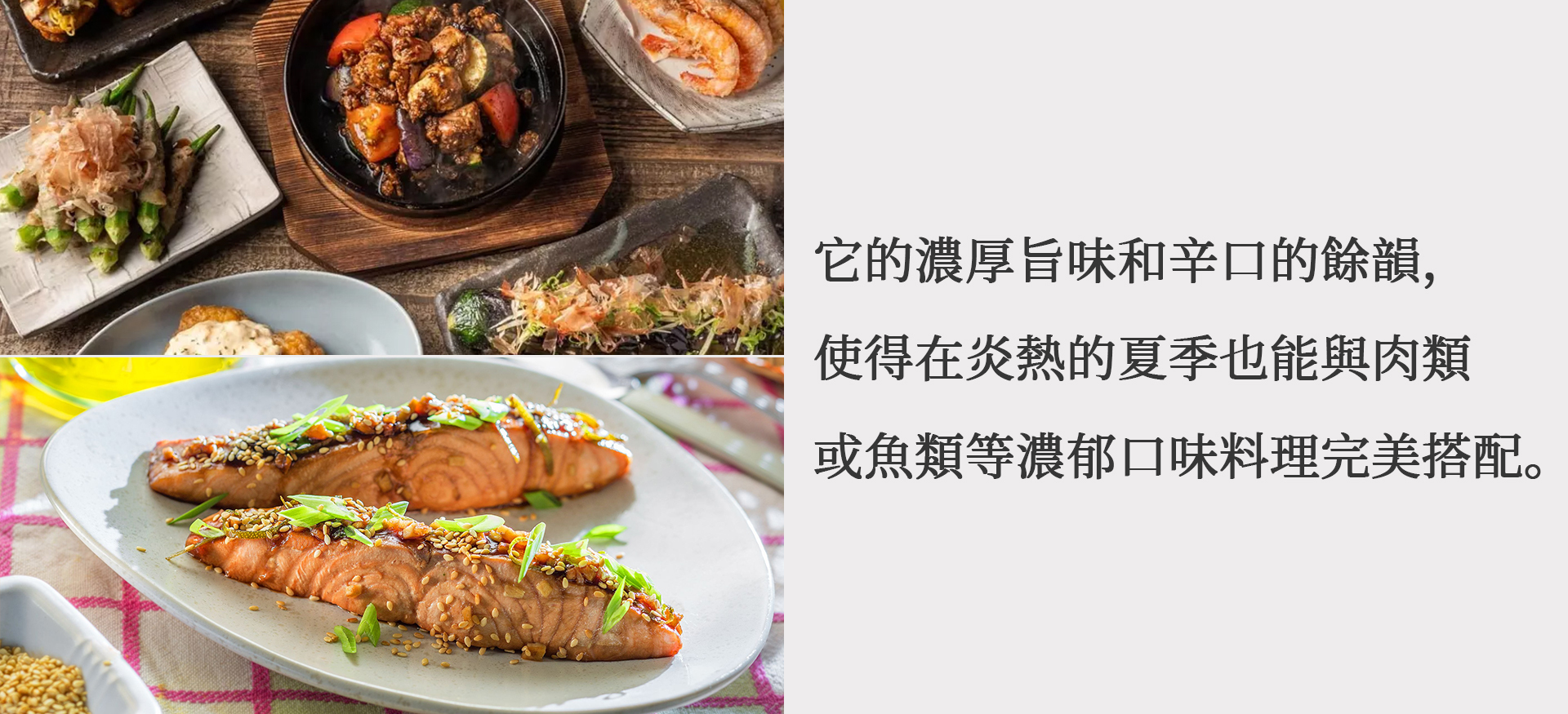 具有辛辣感的清爽口感,強烈的旨味和良好的收尾。